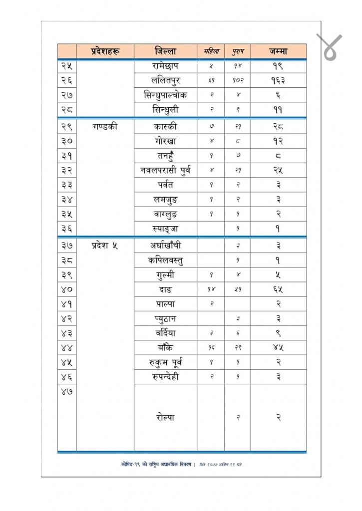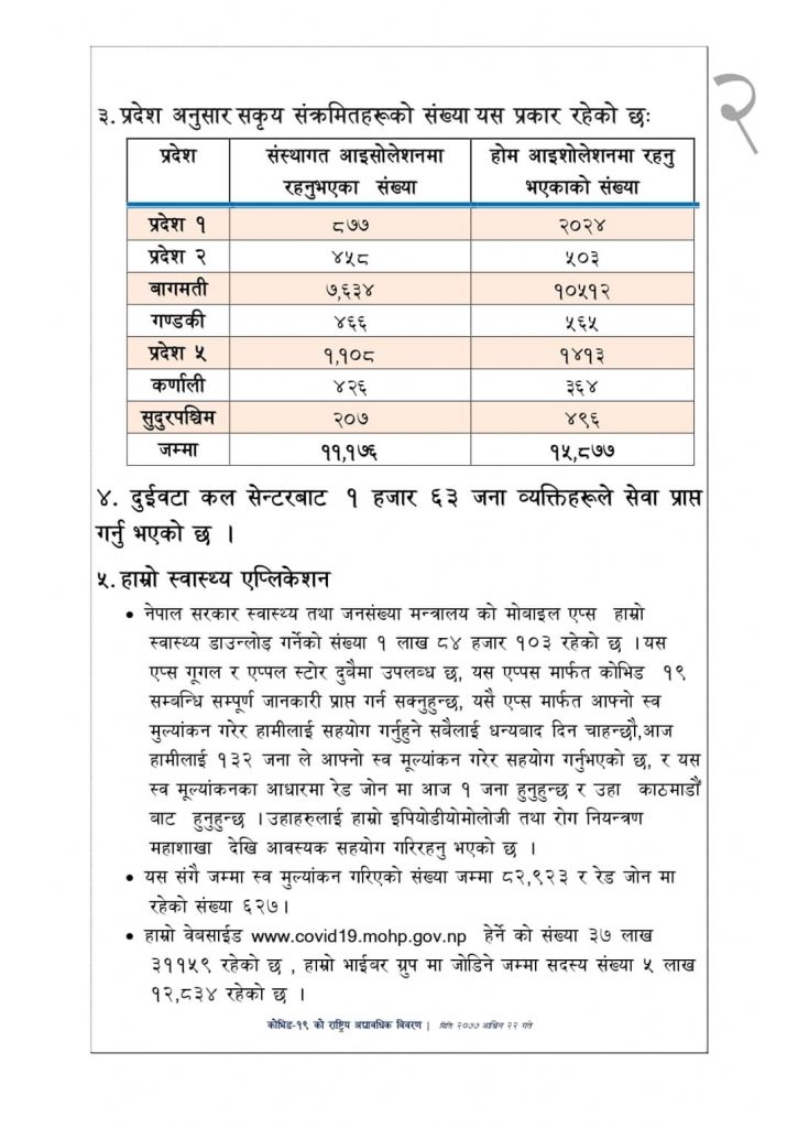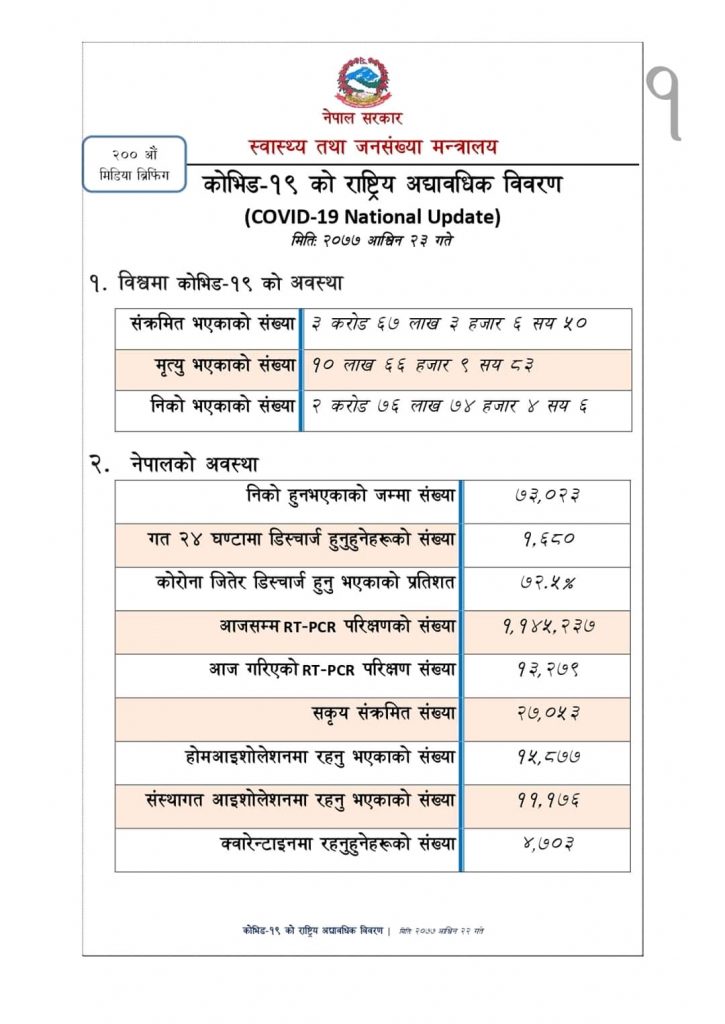 स्वास्थ्य तथा जनसंख्या मन्त्रालयका प्रवक्ता डा. जागेश्वर गौतमले शुक्रबार नियमित लाइभ अपडेटमा उक्त जानकारी दिएका हुन् ।
