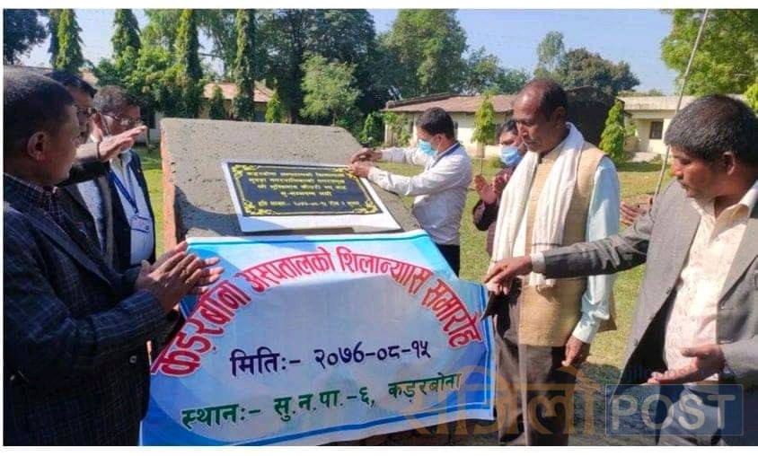 सुरुङ्गा नगरप्रमुख मुक्तिनाथ चौधरी, कञ्चनरुप नगर प्रमुख बसन्तकुमार मिश्र र तिरहुत गाउँपालिका अध्यक्ष हेमन्तकुमार बडहरखेरले एक समारोहबीच अस्पताल भवनको शिलान्यास गरेका हुन । सरकारले ग्रामीण क्षेत्रमा आधारभूत स्वास्थ्य सेवा पु–याउने उद्देश्यले एकैसाथ सात वटै प्रदेशका ३९६ वटा स्थानीय तहमा अस्पताल शिलान्यास गर्ने कार्यक्रम अन्तर्गत सप्तरीका उक्त तीन वटा स्थानीय तहमा अस्पताल भवनको शिलान्यास गरिएको छ । ]