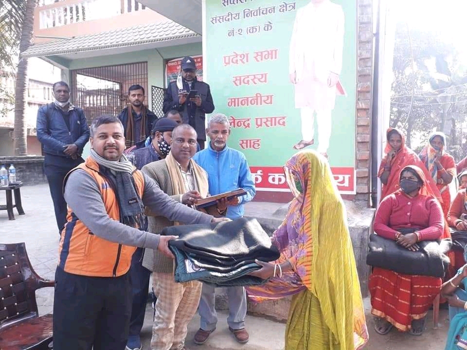 राजविराज स्थित मन्त्री साहको सम्पर्क कार्यालयमा सोमबार आयोजित एक कार्यक्रम बीच ६० जनालाई कम्बल वितरण गरिएको हो । उनले व्यक्तिगत रुपमा महदेवा गाउँपालिकाको पाँच वटा वडाका गरिब, दलित एवम् विपन्न परिवारलाई कम्बल उपलब्ध गराएका हुन।जस अन्तर्गत उक्त गापाको वडा न.-१,२,४,५ र ६ का असाह्य दलित,बिपन्न,गरिब परिवारका सदस्यलाई बितरण गरिएको हो।जनता समाजवादी पार्टीका महदेवा गाउँपालिका समितिका अध्यक्ष दिपनारायण यादवको समन्वयमा कम्बल वितरण गरिएको पार्टीका युवा नेता लक्ष्मण यादवले बताए ।