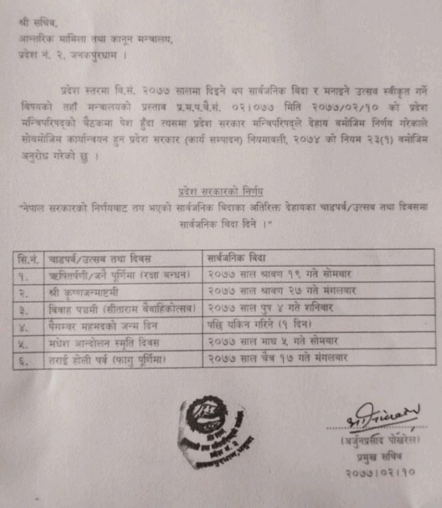 प्रदेश २ सरकारद्वारा  शुक्रबार सार्वजनिक विदाको घोषणा(हेर्नुहोस विज्ञप्ति सहित)