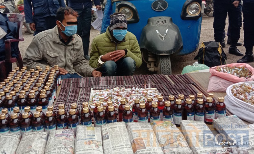 सोही क्रममा बिहीबार राति पिठोको बोराभित्र र कपडाको झोलामा लुकाएर राखिएको अवस्थामा फेनारगन, नुर्फिन र डाइजेपाम ६/६ सय एम्पुल बरामद भएको इलाका प्रहरी कार्यालय पोखरियाका प्रहरी निरीक्षक दिपक थापाले जानकारी दिए ।