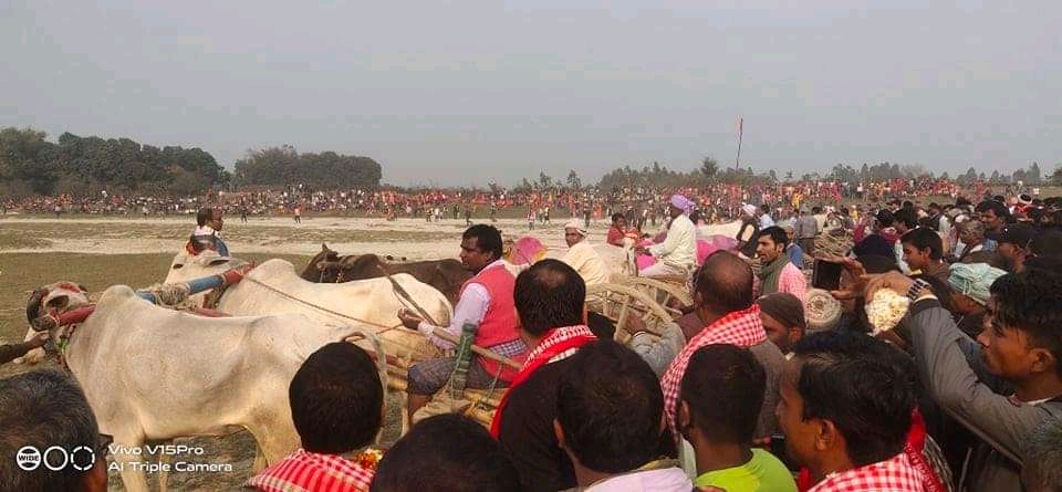 उमेश कुमार साह/सप्तरी,फागुन १ गते।दिनारामभद्री बाबाको जन्म स्थल बोदे बर्साईन नगरपालिका वार्ड न.०२ योगियाको खडक नदिको प्राङ्गणमा बैरागी बाबा जानकी दास द्वारा एक महिना देखि भइरहेको पुजापाठ तथा यज्ञ समारोहमा एक कार्यक्रमको बीच कार्यक्रमको अध्यक्षता बोदे बर्साईन नगरपालिका ०२ को अध्यक्ष दिगेम्बर यादवको अध्यक्षता र प्रमुख अतिथि बोदे बर्साईन नगरपालिकाको नगर प्रमुख आतेश कुमार सिंह यादवको प्रमुख अतिथिमा सम्पन्न भएका छन।१६ जना टिम गोरुदौड प्रतियोगितामा सहभागी भएको थियो। सप्तरीको बोदे बर्साईन नगरपालिका वार्ड न०२ नेगडा बैरिया को खडक नदीमा गोरुदौड प्रतियोगिता सम्पन्न भएको हो ।