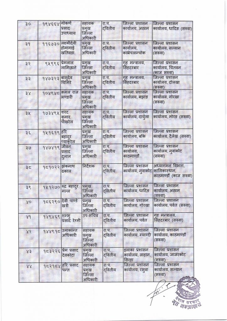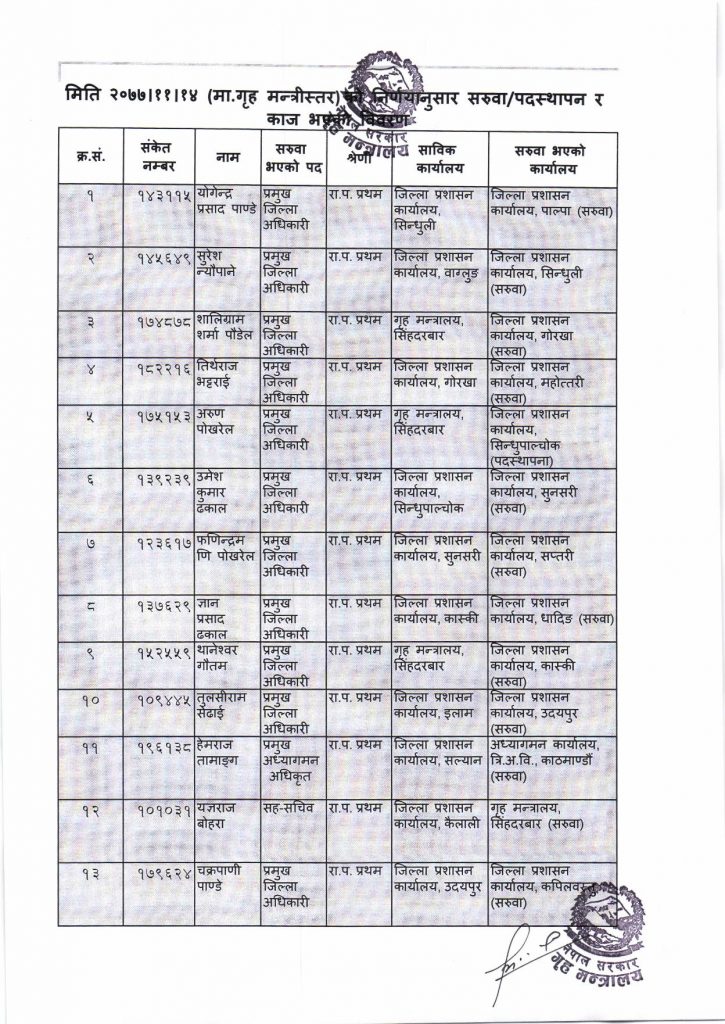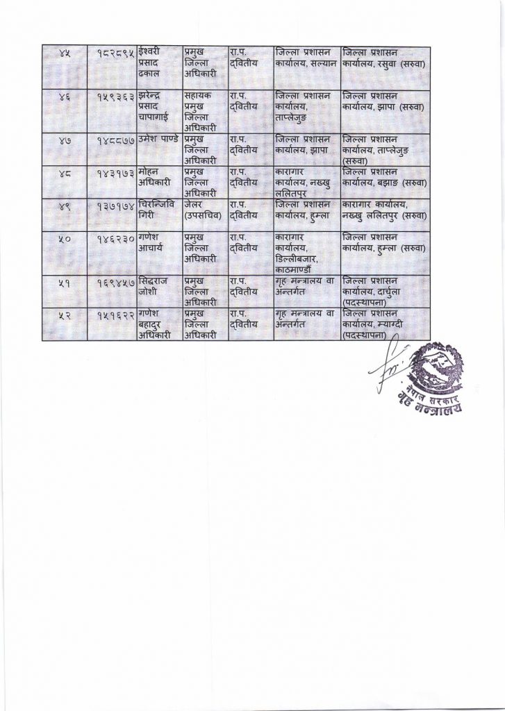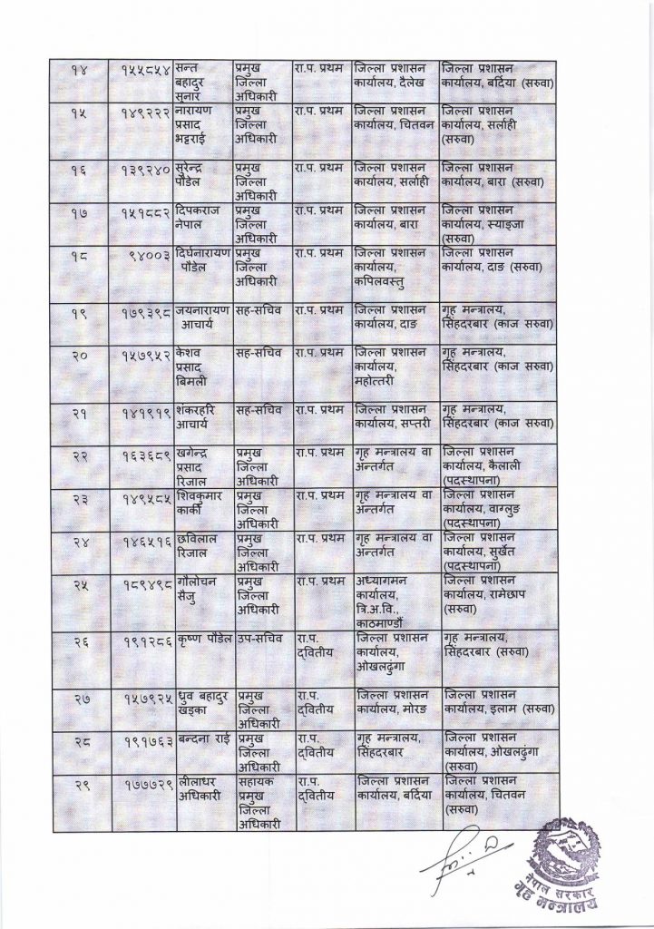 गृह मन्त्रालयले गर्‍यो ३६ जिल्लाका प्रमुख जिल्ला अधिकारीको सरुवा,सप्तरीमा को आए? हेर्नुहोस सुची सहित