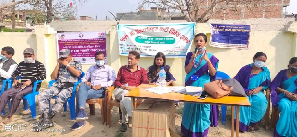 उक्त सभामा मन्तव्य राख्दै प्रमुख प्रशासकीय अधिकृत गजेन्द्र नाथ शर्माले भने जब सम्म छोरी बुहारीमा विभेद रहन्छ महिला हिंसा अन्तय हुदैन किनभने हामीले जति माया छोरीलाई दिन्छौं त्यति माया बुहारीलाई दिदैनाैं बुहारीलाई पनि छोरीको दर्जा दिनुपर्नेमा जोड दिए ।सो कार्यक्रम सशस्त्र प्रहरी निरीक्षक उत्सव विष्ट , नगर शिक्षा अधिकृत राम सागर यादव,ईलाका प्रहरी प्रमुख प्रहरी नायब निरीक्षक अरूण सिंहलगयतले मन्तव्य दिएका थिए ।