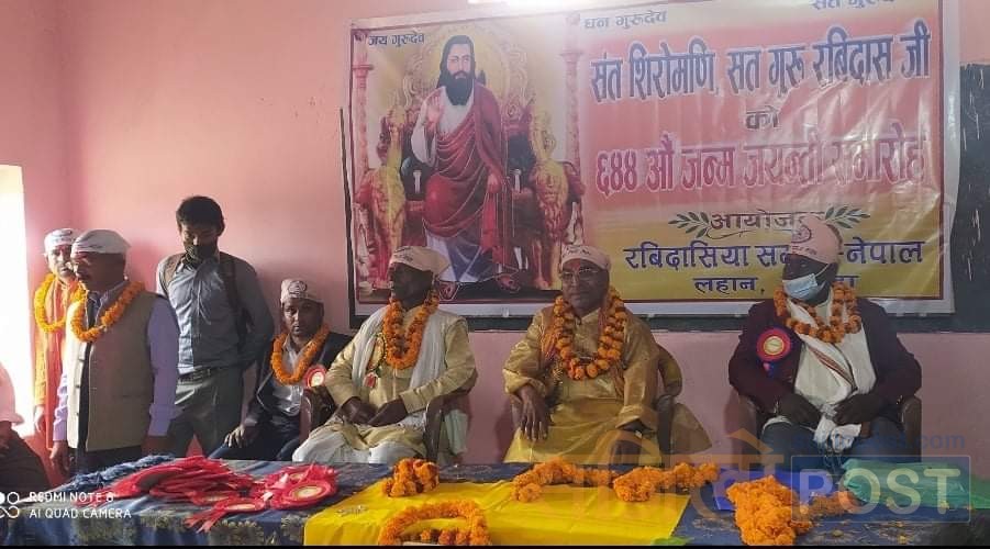महेश सिंह सिरहा/लहान फागुन २७ गते।सिरहाको लहानमा संन्त सिरोमणि रबिदास को ६४४ औं जन्म जयन्ती समारोह सिरहाको लहानमा सम्पन्न भएको छ । लहान स्थित रहेको पशुपति आदर्श उच्च माध्यमिक बिधालय को प्राङ्गण बाट हजारौं को संख्यामा रयालि निकालिएको हो ।