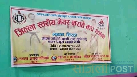 जिल्ला स्तरीय मेयर कराते कपका प्रमुख अतिथि लहान नगरपालिकाका मेयर मुनी साह रहेका थियोे ।स्वास्थ्यको लागि खेलकुद , राष्ट्रको लागि खेलकुद नाराका साथ हिजो शुक्रबार लहानको कवर्ड हलमा सम्पन्न भएको राजेश गुप्ताले बताए ।