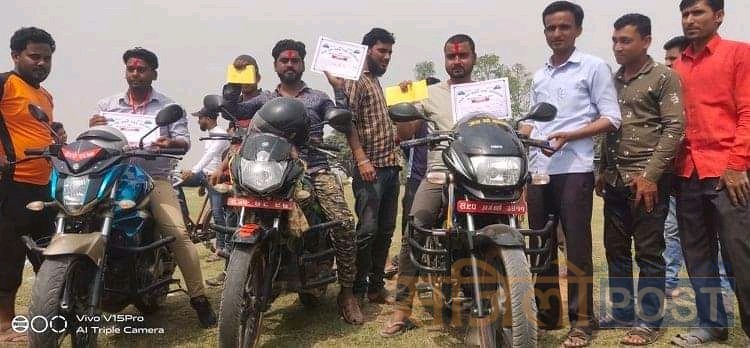 उमेश कुमार साह/सप्तरी,चैत ७ गते।सप्तरीको बोदे बर्साईन नगरपालिका वडा नम्बर ०५ स्थित श्री चन्द्रा नमूना मा. बिधालयको खेल मैदानमा शनिबारका दिन बोदे बर्साईनको सम्पुर्ण युवाहरुको पहलमा, “प्रथम स्लो बाईक राइड प्रतियोगिता सम्पन्न भएको छ । बिधालयको खेलमैदानमा स्लो बाईक रेस प्रतियोगिता समपन्न भएको हो । बाईक स्लो रेस प्रतियोगितामा बोदे बर्साईन नगरपालिका वडा नम्बर ०५ को अध्यक्ष मो. मजेबुर रहमानको प्रमुख अतिथिमा र श्री चन्द्रा नमूना मा. बि का शिक्षक जितेन्द्र प्रसाद गुप्ता तथा सम्पुर्ण युवा , सल्लाहकार को पहलमा उद्घाटन गर्नुभएको थियो।