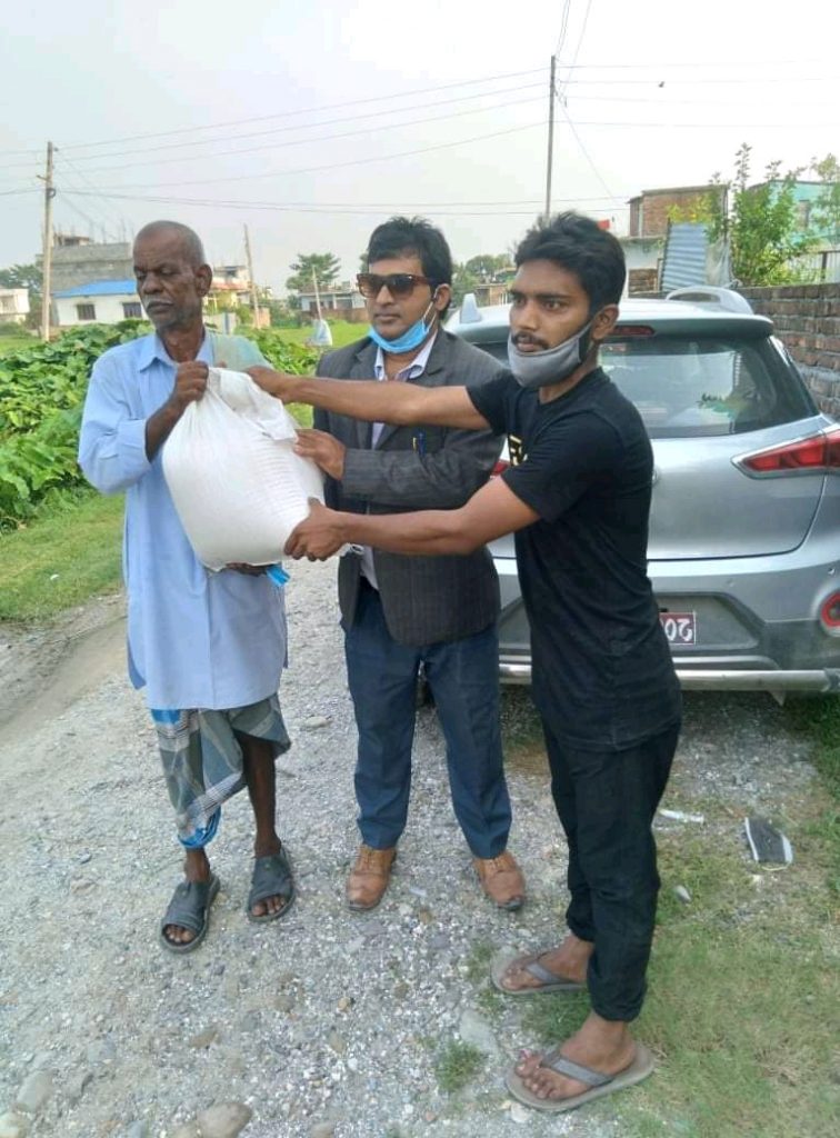 अभियान मा सामाग्री बितरण गर्न समाजिक अभियन्ता हरु सुरेश महतो बब्लु मेहता सामाज सेबि सिङ्गर बिरेन्द्र मेहता को समेत उपस्थित थियोे