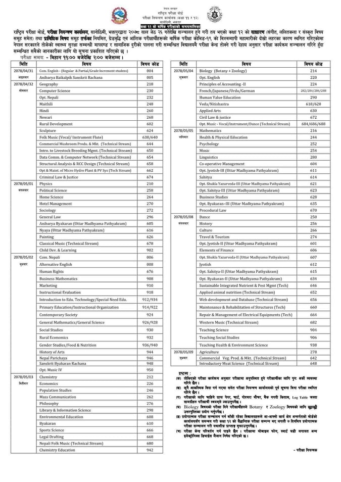 भौतिक दूरी कायम राख्दै स्वास्थ्य सुरक्षाको उपाय अपनाउँदै परीक्षा लिने व्यवस्था मिलाउन समेत बोर्डले निर्देशन दिएको छ ।