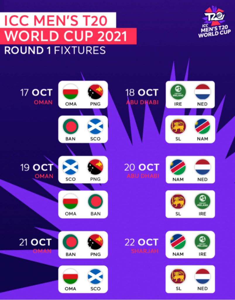 राउण्ड वान अन्तर्गत समूहबी मा रहेको ओमानले पहिलो खेलमा पपुवा न्यु गिनीसंग खेल्नेछ । त्यसै समूहको बंगलादेश र स्कटल्याण्डबीचको खेल पनि पहिदो दिनै हुनेछ ।