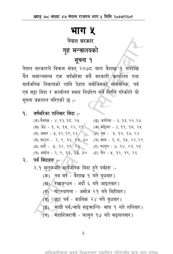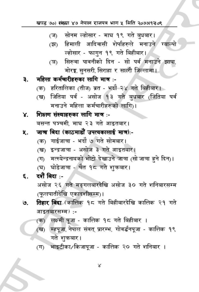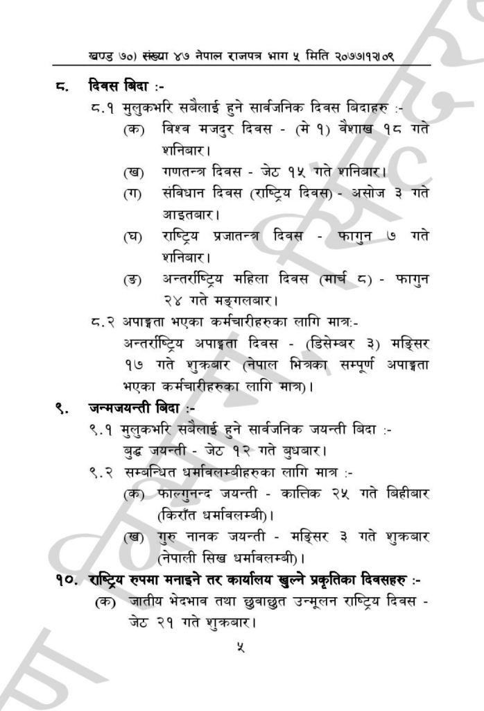 यी हुन् २०७८ सालमा सरकारले दिएको सार्वजनिक बिदा