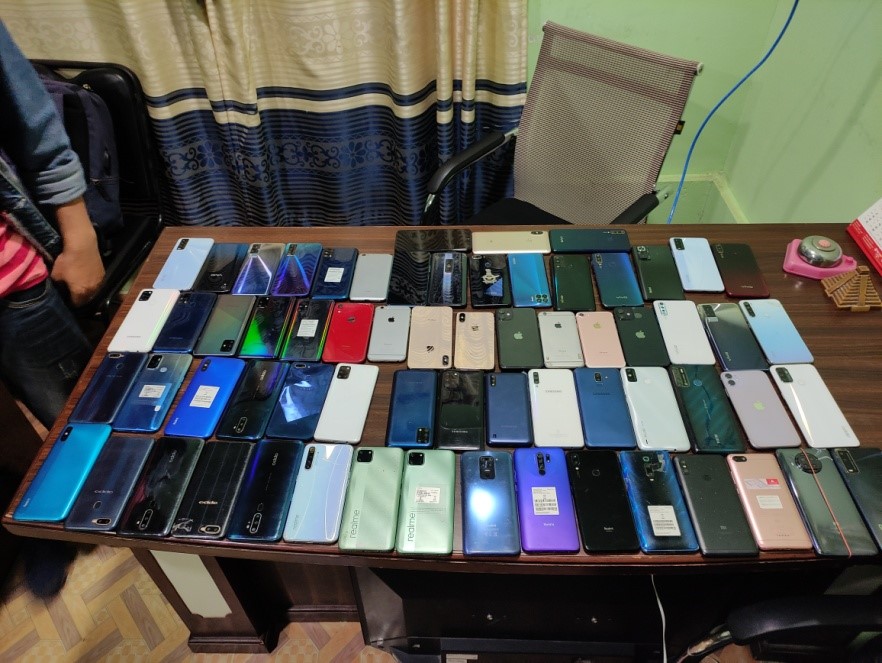 प्रहरीले उनीहरुको साथबाट आईफोन, सामसुङ, लाभा, ओप्पो, हुवावे र रियलमी कम्पनीका ६१ थान मोबाइल बरामद गरेको छ । दुवैलाई अवश्यक कारबाहीका लागि त्रिभुवन अन्तर्राष्ट्रिय भन्सार कार्यालय गौचरण पठाइएको महाशाखाले जनाएको छ ।