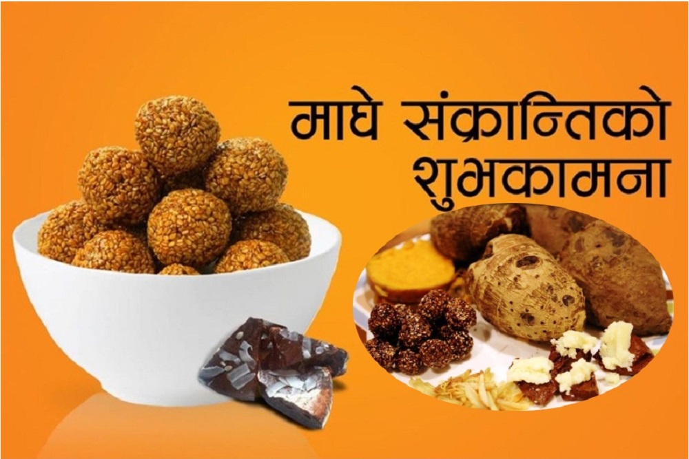 माघे-मकर संक्रान्तिको अवसरमा आज देशभरका नदी स्नान गरी मन्दिरमा पूजाआजा गरिन्छ । साथै घिउ, चाकु, तिलको लड्डु र तरुल खाएर मनाउने गरिन्छ । भविष्य पुराण, विष्णु वचन तथा धर्म सिन्धु नामक ग्रन्थमा यस दिन स्नान गरी घिउ, चाकु, तिलको लड्डु, सागपात, तरुल, वस्त्र, पानीको भाँडो र मकलसहितको सिदा दान गरेमा विशेष फल प्राप्त हुने र उक्त पदार्थ आफूले पनि खाएमा शरीर पोसिलो हुनुका साथै निरोगी हुने उल्लेख छ ।