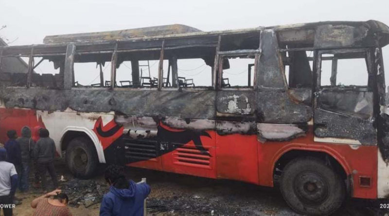 बारा/माघ १६ गते । बारामा एक यात्रुबाहक बसमा आगजनी गरिएको छ ।