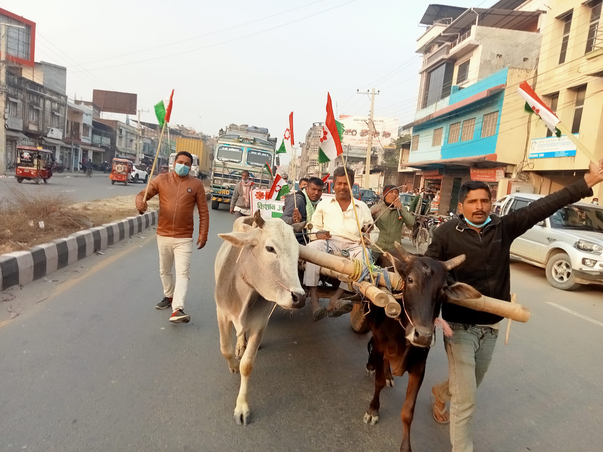 सिरहा सहितका जिल्लामा किसानहरुले निकाले गोरुगाडा जुलुस
