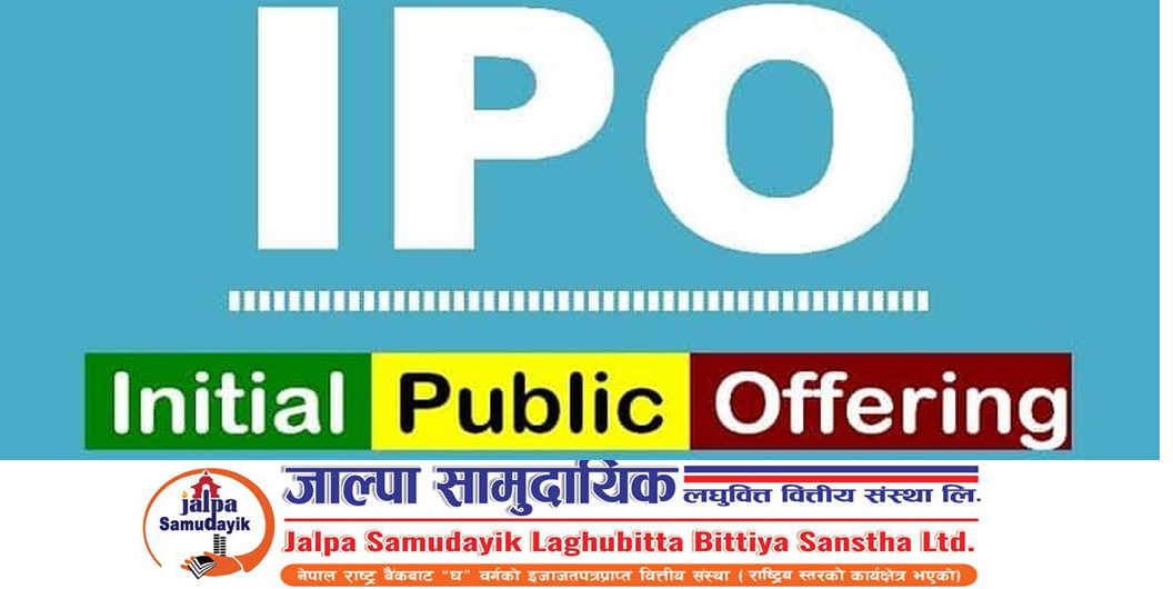 माघ २० गते। जाल्पा सामुदायिक लघुवित्त वित्तीय संस्थाले भोलि शुक्रबारदेखि धितोपत्रको प्राथमिक सार्वजनिक निष्कासन (आइपिओ) बिक्री खुला गर्ने भएको छ।