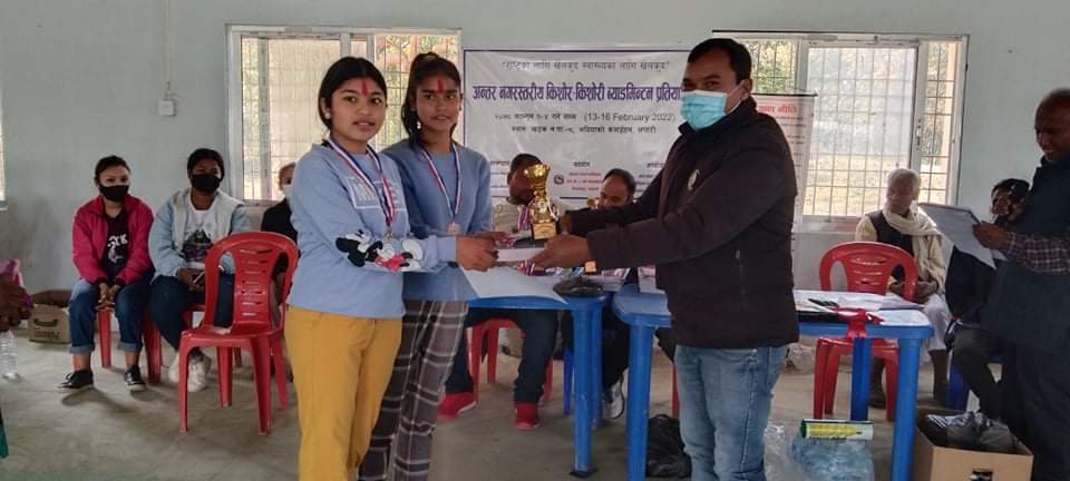अन्तर नगरस्तरीय किशोर–किशोरी ब्याडमिन्टन प्रतियोगितमा केटा तर्फ प्रथम हुने धिरज चौधरी,पृथक कुमार चौधरी, केटी तर्फ प्रथम सोनीया कुमारी मंडल, अनिषा कुमारी चौधरी र दोश्रोमा केटा तर्फ प्रकाश चौधरी,निशानत चौधरी ,किशोरी तर्फ बिनिता पासवान,सलमा खातुन सुरुङ्ग र तेश्रोमा मो.रुस्तम,बिनाय कुमार साह खडक तथा भावना न्योपाने,एलिसा साह सुरुङ्ग पुरस्कृत भएका छन । प्रथम ,दोश्रो,तेश्रोलाई कापी बलपेन,ट्रफि,मेडल प्रमानपत्र, बितरण गरेको थियो ।