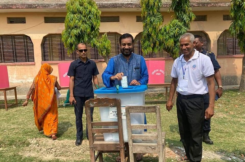 नेपाली काँग्रेसका नेता विमलेन्द्र निधिले गरे मतदान