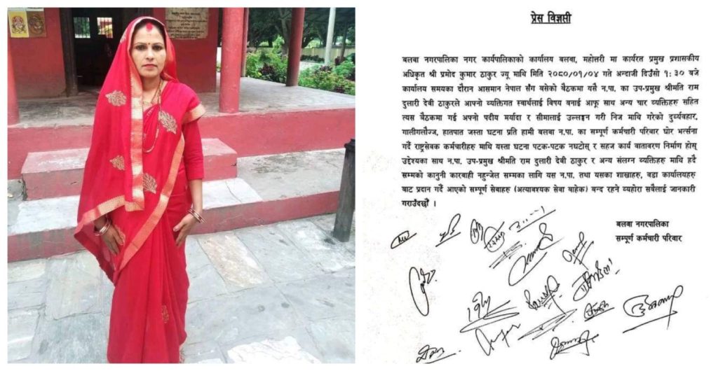 बैठक बसिरहेको बेला नगरपालिकाका उपप्रमुख रामदुलारी देवीले प्रमुख प्रशासकीय अधिकृत प्रमोदकुमार ठाकुरमाथि अभद्र व्यवहार गरेको भन्दै विरोधमा कमार्चारीहरू आन्दोलित भएका हुन् ।