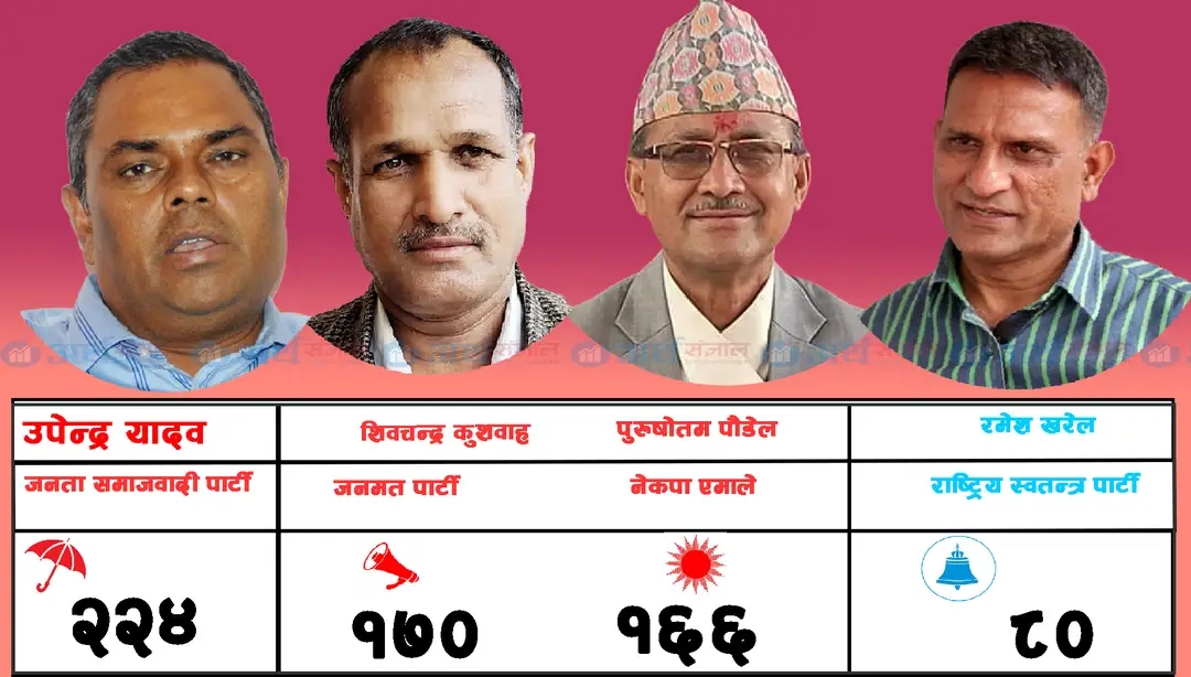 यादवले २२४ मत ल्याउदा जनमतका उम्मेदवार शिवचन्द्र प्रसाद कुसवाहा १७० मत ल्याएका छन् । त्यस्तै एमालेका पुरुषोत्तम पौडेलले १६६ मत ल्याएका छन् भने रास्वपाका रमेश खरेलले ८० मत ल्याएका छन् । करैयामाई गाउँपालिका वडा १ को मत गणना भएको हो । यो क्षेत्रमा ६७० मत गनिसकेको छ ।