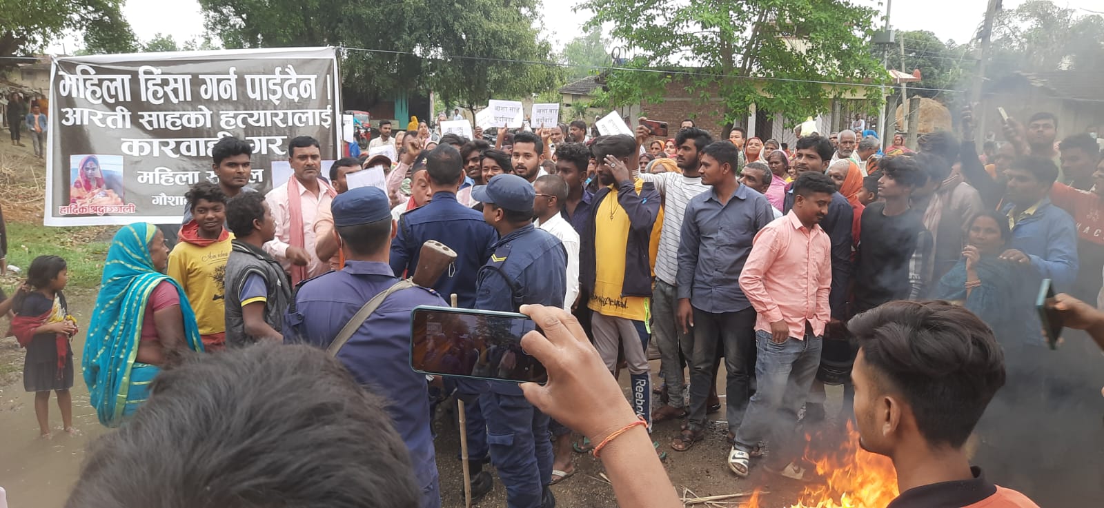 करिब डेढसयको समुहमा आक्रोशितहरूको भिडले मृतकको श्रीमानको घरमा आक्रमण गर्न खोजेपछि उनीहरूलाई बचाउने क्रममा प्रहरीले २२ राउन्ड हवाई फायर गरेको प्रहरी प्रवक्ता प्रहरी नायव उपरीक्षक दिलीपकुमार गिरीले जानकारी दिए।
