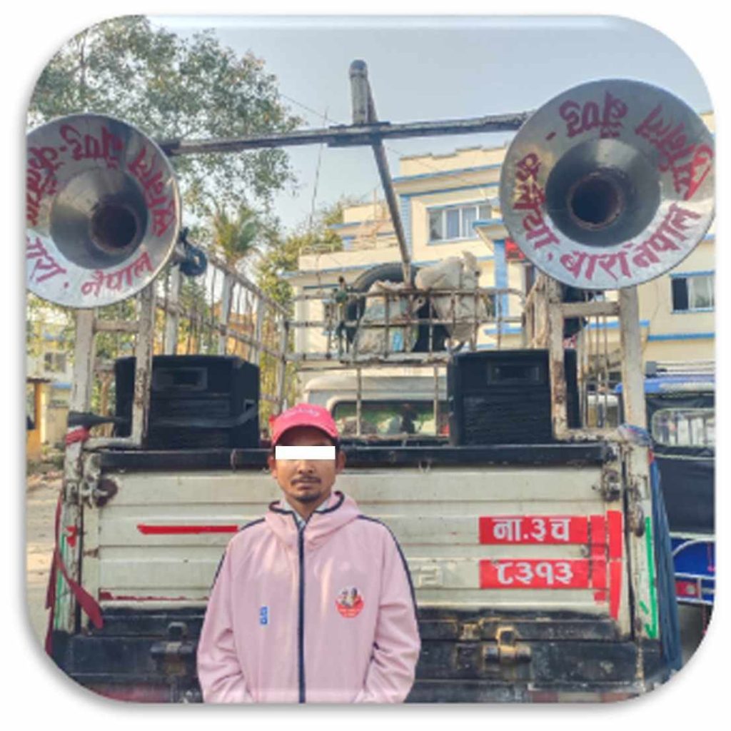 फागुन २९ गरे। बारामा चर्को आवाजमा डीजे बाजा बजाउँदै ध्वनि प्रदूषण गरेको आरोपमा एक जना पक्राउ परेका छन् । पक्राउ पर्नेमा कलैया उपमहानगरपालिका–९ रामपुर बस्ने ३० वर्षीय मनौवर मियाँ रहेका छन् ।