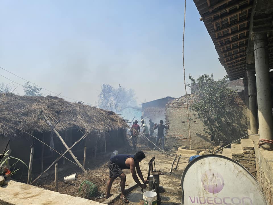 महोत्तरीको मटिहानीमा सयौ घर जलेर नष्ट, आगो अझैँ नियन्त्रण बाहिर