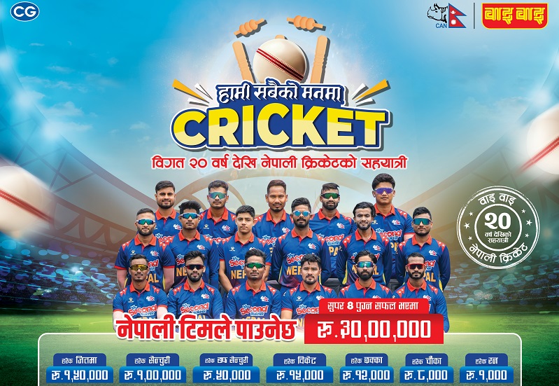 जेठ २० गते । चौधरी ग्रुप (सीजी) ले आईसीसी टी–२० विश्वकप क्रिकेटमा नेपाली टोलीको प्रदर्शनअनुसार विभिन्न पुरस्कारको घोषणा गरेको छ ।