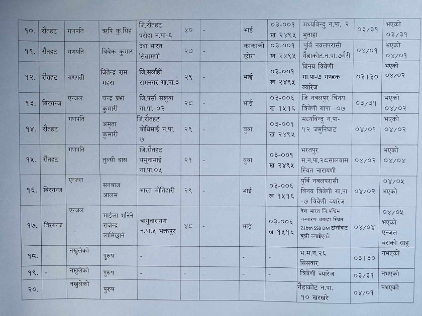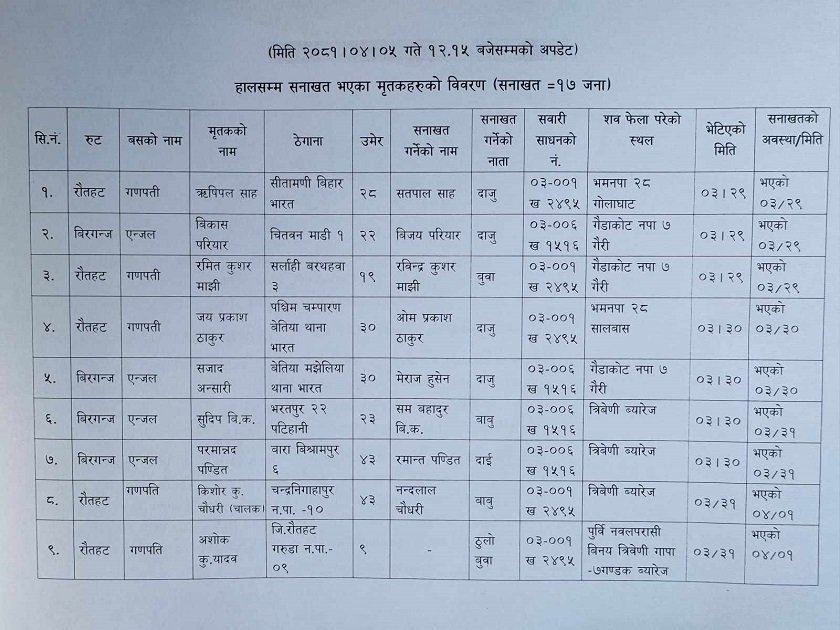 फेला परेका शव र सनाखतको सूची-