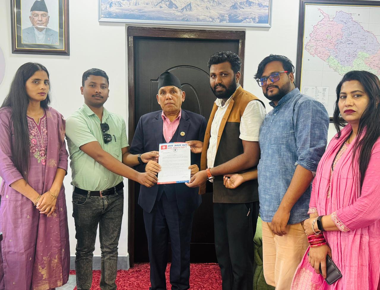 आजपाले काठमाडौंको सिंहदरबारमा आज राष्ट्रिय सभाका अध्यक्ष दाहाललाई ज्ञापनपत्र बुझाएको हो । आजपा प्रवक्ता चन्द्रभुषण साहको नेतृत्वमा गएको टोलीले बुझाएको ज्ञापनपत्रमा श्रेणीविहीन कर्मचारीहरूको सम्पूर्ण अधिकार सुनिश्चित गर्न गराउन विधेयकमा आवश्यक संशोधन गर्नुपर्ने माग गरेको छ ।