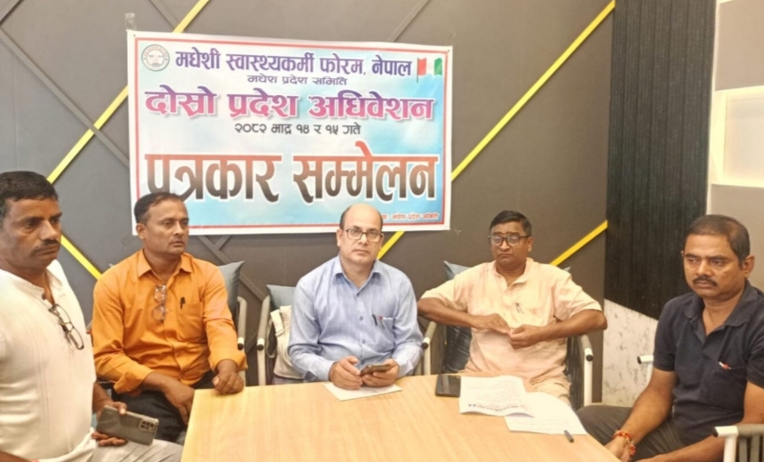मधेशी स्वास्थ्यकर्मी फोरम,मधेश प्रदेशको दोस्रो महाधिवेशन शनिबारदेखि जनकपुरधाममा सुरु हुने भएको छ । महाधिवेशनको सम्पूर्ण तयारी पूरा भएको जानकारी शुक्रबार आयोजित पत्रकार सम्मेलनमा फोरम मधेश प्रदेशका अध्यक्ष विनोद यादवले दिएका छन् ।