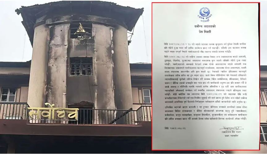 उनले भनेका छन्- ‘सर्वोच्च अदालतलगायत देशका अन्य अदालतहरुमा भएको आगजनी, ढुंगामुढा, तोडफोड, लुटपाटबाट अदालतका भवनहरुमा पुग्न गएको क्षतिप्रति गहिरो दुःख व्यक्त गर्दछौं । नागरिकहरुको आस्थाको केन्द्रको रुपमा रहेको अदालतहरुमा भएको आगजनी तथा विध्वंसात्मक आक्रमणले नागरिकहरुका महत्वपूर्ण दस्तावेजहरु, अदालतमा रहेका उपकरणहरु, सवारी साधन लगायतमा अकल्पनीय क्षति पुग्न गएको छ ।’