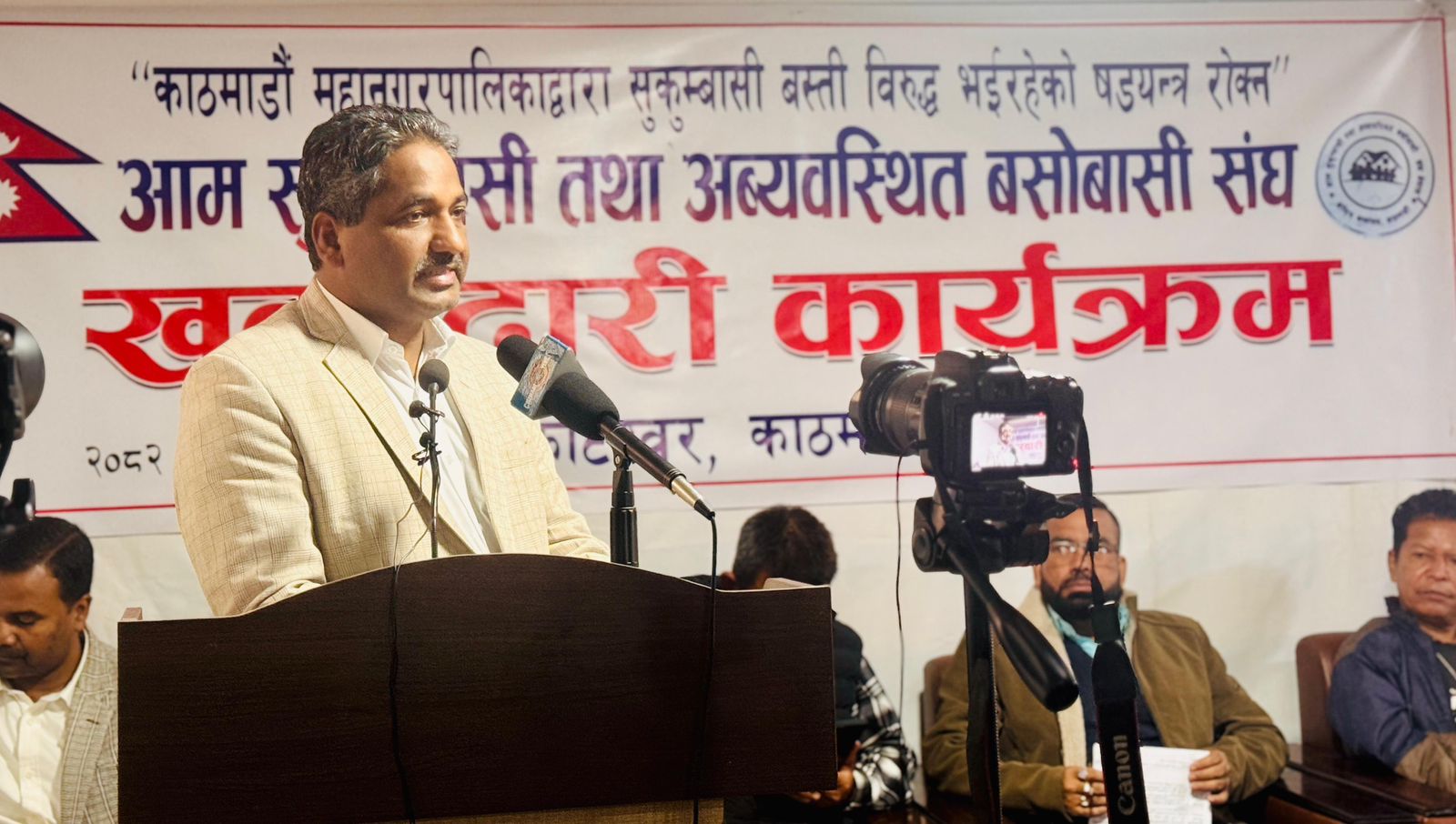 आम सुकुम्बासी तथा अव्यवस्थित बसोबासी संघका अध्यक्ष कालबहादुर विकको अध्यक्षतामा भएको सो कार्यक्रममा आजपा प्रवक्ता चन्द्रभुषण साह, सचिवालय सदस्य सुभाष साह, कबाड व्यवसायी संघर्ष समितिका रामकेवल गुप्ता, सुकुम्बासी संघका नेताहरु अमर लिम्बु, मानसिंह गजेल, महेन्द्र खड्का, शान्ता थापामगर, अर्जुन कुमार, सुजन पराजुली, हरि सुवेदी, नरबहादुर बराइली लगायतकाले सुकुम्बासी आन्दोलनमा समर्थन गर्दै कानून विपरित हुने कार्यको विरोधमा उत्रिने प्रतिबद्धता व्यक्त गरेका छन् ।