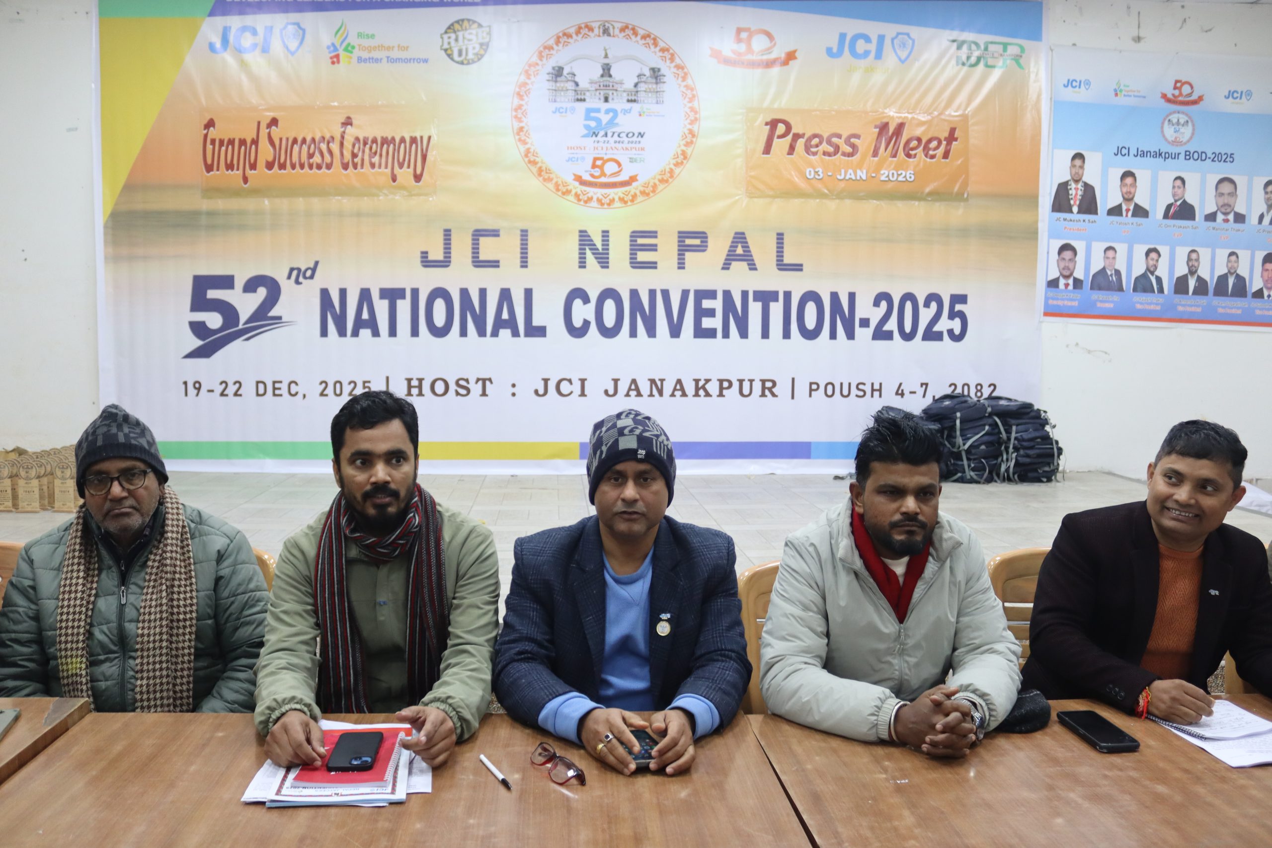 जनकपुरधाम/पौष १९ गते । जनकपुरधाममा गत पुष ४ देखि ७ गतेसम्म आयोजित नेपाल जेसीजको ५२औँ राष्ट्रिय महाधिवेशन भव्यताका साथ सफलतापूर्वक सम्पन्न भएको छ। चार दिनसम्म चलेको यस महाधिवेशनले देशभरका जेसीज आवद्ध युवाबाट उच्च प्रशंसा पाएको भन्दै आयोजक जनकपुर जेसीजले पत्रकार सम्मेलनमार्फत आयोजना पूर्ण रुपमा सफल भएको जानकारी दिएको छ।