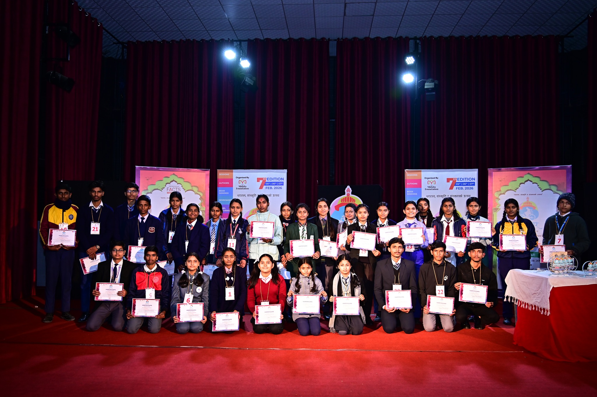 गिरिजानन्द साह/जनकपुरधाम/पौष २१ गते। जनकपुरधामको साहित्य, संस्कृति र सिर्जनशीलताको धरातललाई अझ सुदृढ बनाउने उद्देश्यका साथ सातौँ जनकपुर साहित्य महोत्सवअन्तर्गत अन्तरविद्यालय प्रतियोगिता आइतबारदेखि सुरु भएको छ। अन्तरविद्यालय प्रतियोगिताको उद्घाटन समारोहको प्रमुख अतिथि जनकपुरधाम उपमहानगरपालिकाको मेयर मनोज साह रहनुभएको थियो। प्रतियोगिता अन्तर्गत आइतबार माइ भोट माई च्वाईस शिर्षकको वक्तृत्वकला भएको सम्पन्न भएको छ। जुन प्रतियोगितामा उत्कृष्ट ५ छनोट जना छनोट गरिएको छ। जसमा निर्णायक मण्डलीमा मनिष रमण साह, नित्यानन्द मण्डल र मनिका झा रहेका थिए। नव मिथिला फाउन्डेसनको आयोजनामा सुरु भएको उक्त प्रतियोगितामा बालबालिका तथा युवामा निहित प्रतिभाको पहिचान र प्रवर्द्धनलाई विशेष प्राथमिकता दिइएको आयोजकले जनाएको छ।
