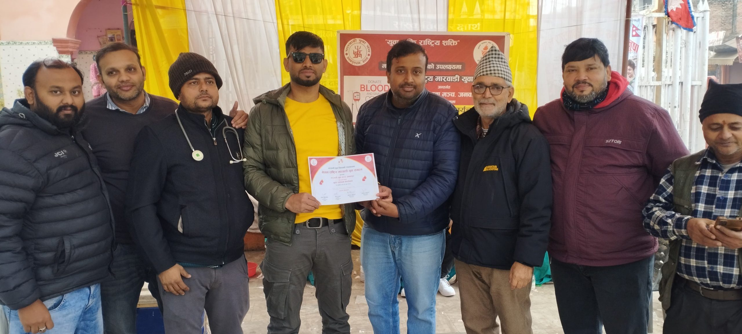 नेपाल रेडक्रस सोसाइटीको प्राविधिक सहयोगमा सम्पन्न उक्त कार्यक्रममा समाजका विभिन्न क्षेत्रका व्यक्तिहरूको उल्लेख्य सहभागिता रहेको मारवाडी युवा मञ्चका अध्यक्ष राहुल सिंघानियाले जानकारी दिए।