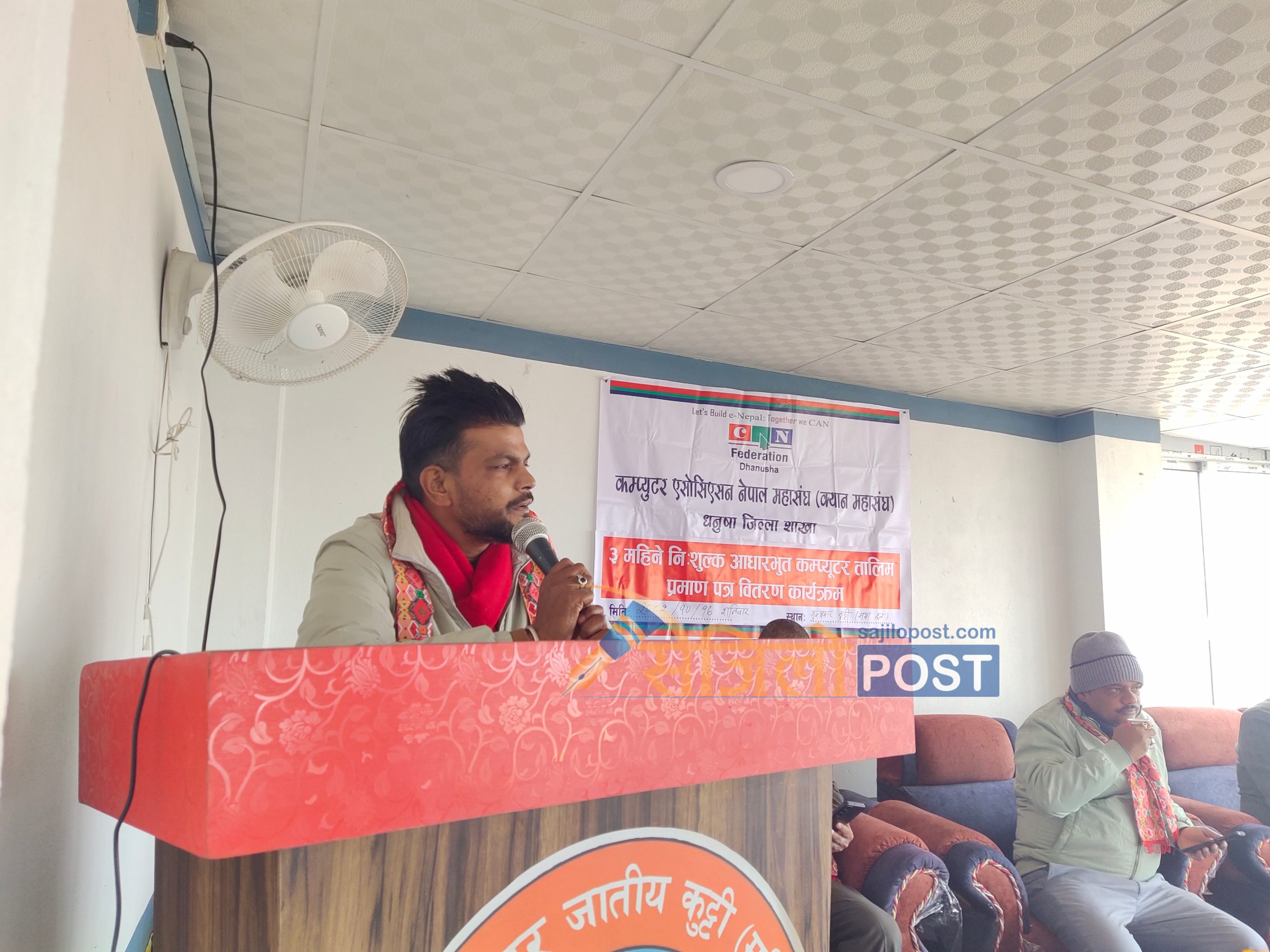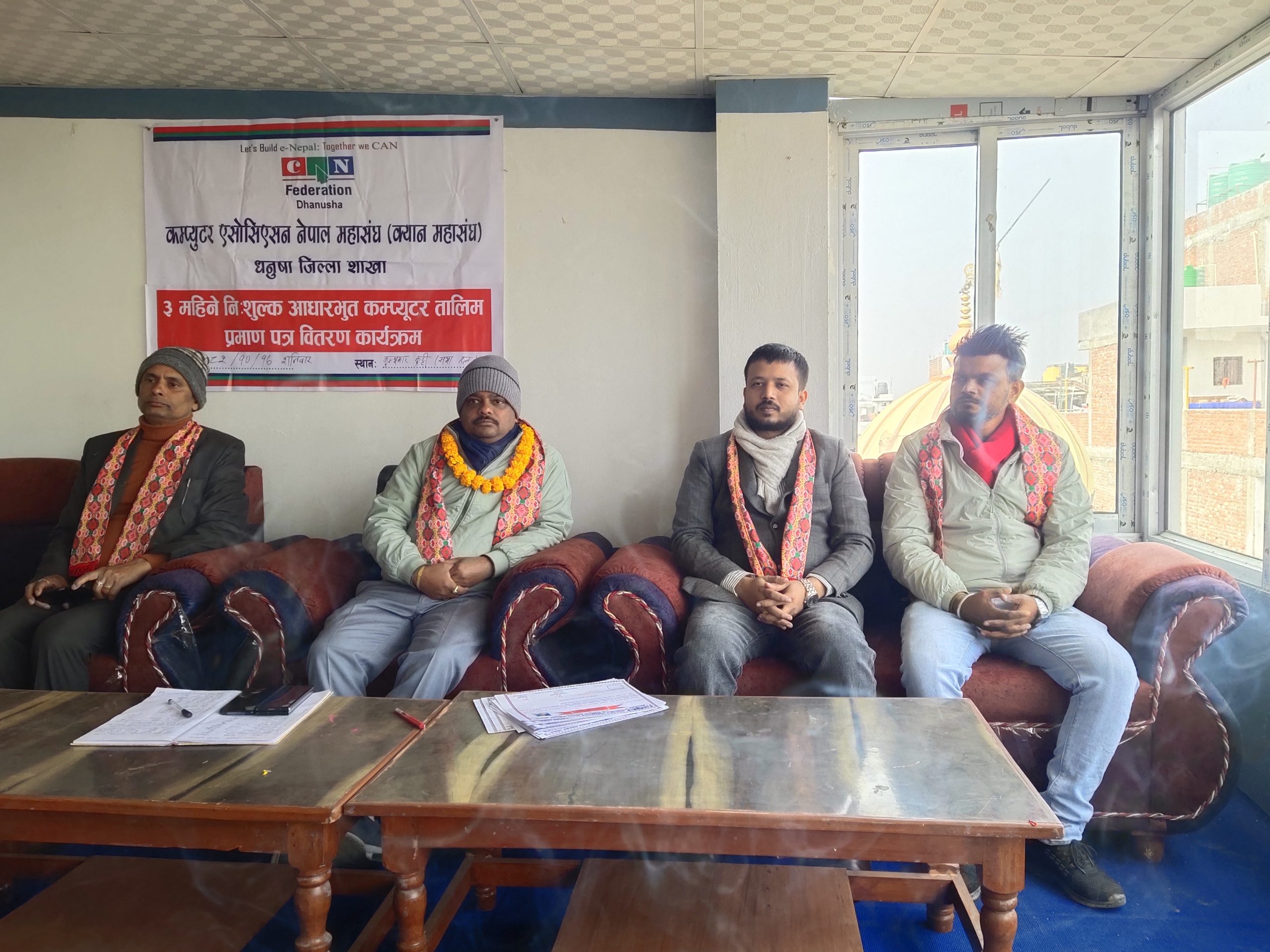 कम्प्युटर एसोसिएसन नेपाल महासंघ (क्यान) धनुषा जिल्ला शाखाद्वारा आयोजित ३ महिने निःशुल्क आधारभूत कम्प्युटर तालिम सफलतापूर्वक सम्पन्न भएको छ। सूचना प्रविधिको पहुँचबाट वञ्चित समुदायका युवायुवतीलाई कम्प्युटर सीपमा दक्ष बनाउने उद्देश्यले सञ्चालन गरिएको उक्त तालिम समापनका अवसरमा आज जनकपुरधाममा विशेष कार्यक्रम आयोजना गरी प्रशिक्षार्थीहरूलाई प्रमाणपत्र वितरण गरिएको हो।