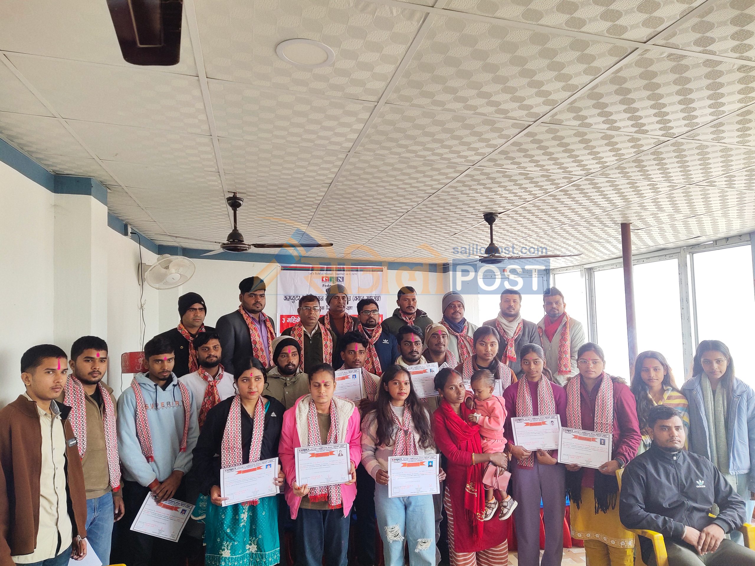 कम्प्युटर एसोसिएसन नेपाल महासंघ शाखा धनुषाद्वारा ३ महिने निःशुल्क आधारभूत कम्प्युटर तालिम सम्पन्न,प्रशिक्षार्थीहरुलाई प्रमाणपत्र वितरण