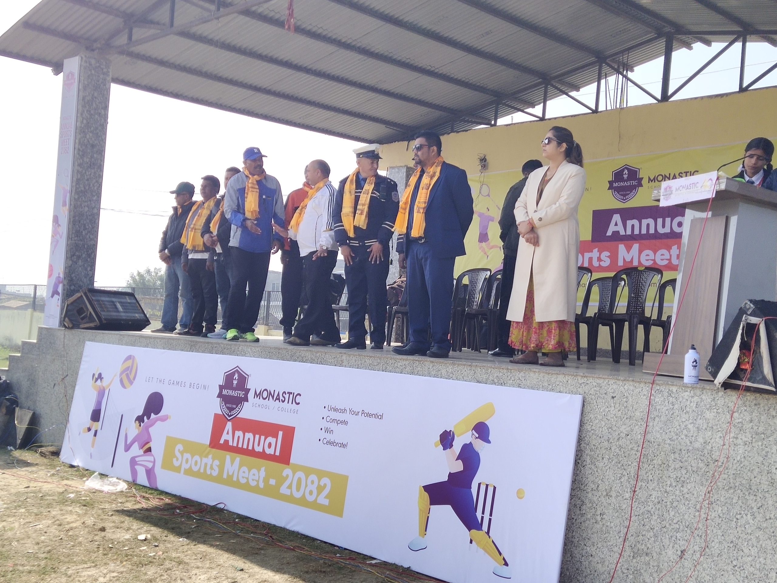 कार्यक्रमको अध्यक्षता मोनास्टिक स्कुलकी प्रधानाध्यापक शिखा नायक ले गरेकी थिइन् भने उद्घाटन समारोहका प्रमुख अतिथी धनुषा ट्राफिक प्रहरी कार्यालयका ब.प्र.नि. रुपक मैनाली रहेका थिए। त्यस्तै, विशिष्ट अतिथीका रूपमा मोनास्टिक स्कुल तथा कलेजका डाइरेक्टर सोनु साह उपस्थित थिए।