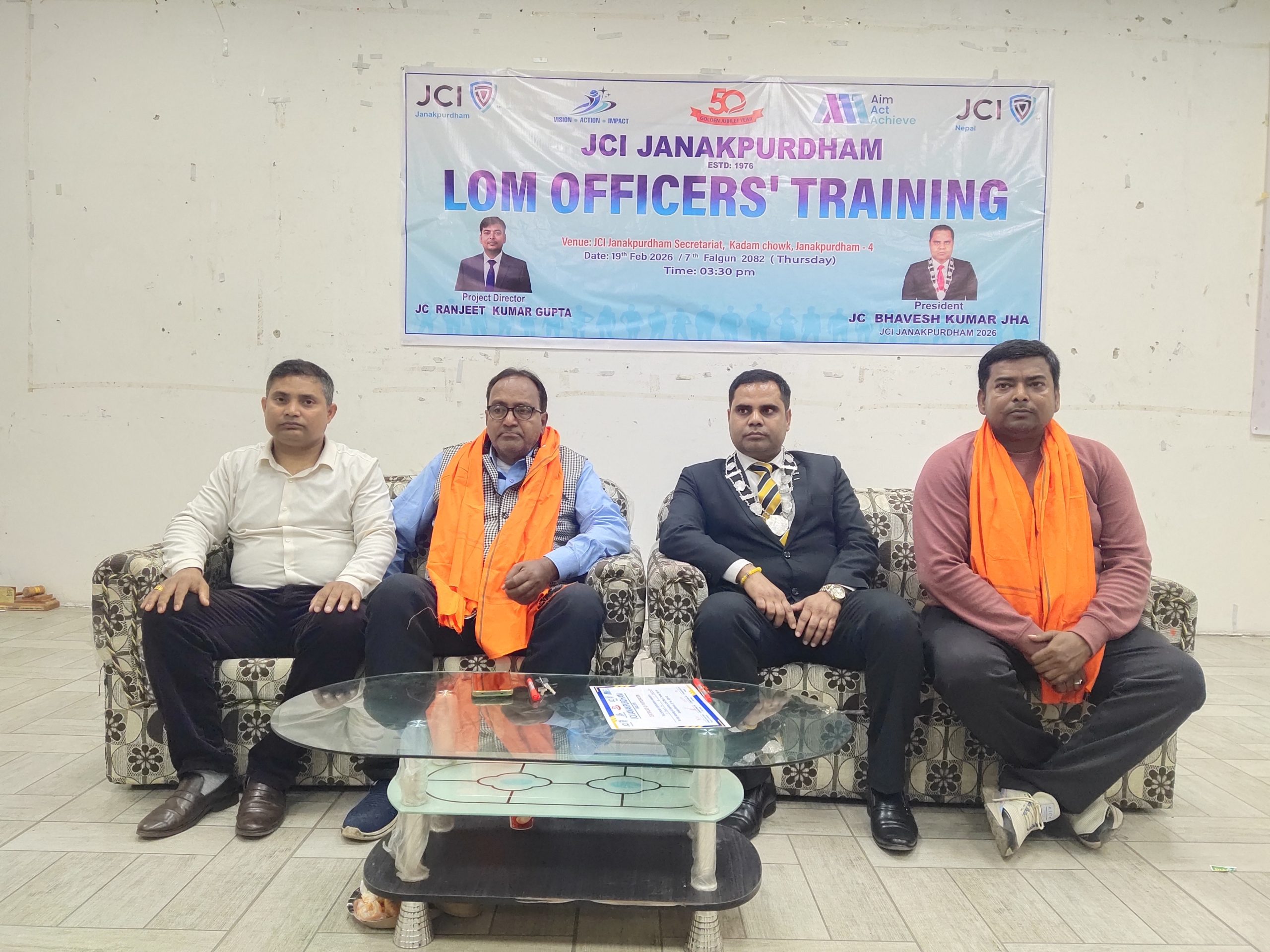 उक्त तालीममा जनकपुर जेसीज वर्ष २०२६ का अध्यक्ष जेसी भवेश झा लगायत जनकपुर जेसिज वर्ष २०२६ का सम्पूर्ण बोर्ड मेम्बर र बोर्डका पदाधिकारीहरुको उपस्थिति रहेको थियो । लोम अफिसर ट्रेनिङको संयोजक जेसी रन्जित कुमार गुप्ता रहेका थिए भने कार्यक्रमको सञ्चालन जनकपुर जेसीज वर्ष २०२६ का महासचिव जेसी मनोहर ठाकुरले गरेको थियो ।